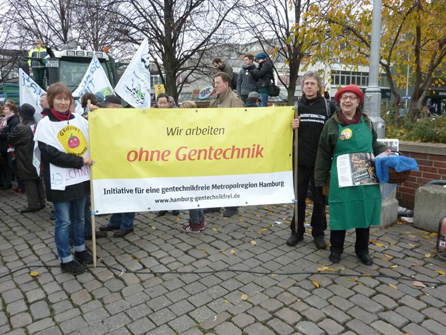 Vertreter der Initiative gentechnikfreie Metropolregion Hamburg auf der der Demo “Wir haben es satt” in Hannover am 10.11.2012